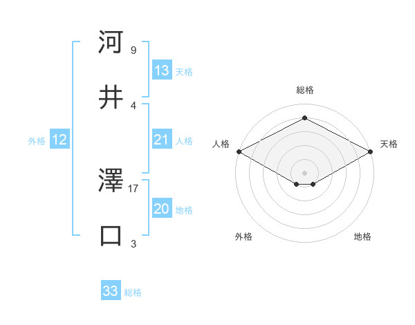河井 澤口さんの総格は33画の4点!