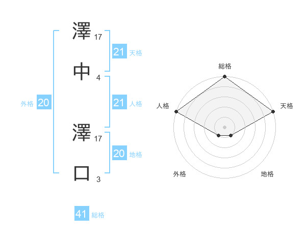 澤中 澤口さんの人格は21画の5点!