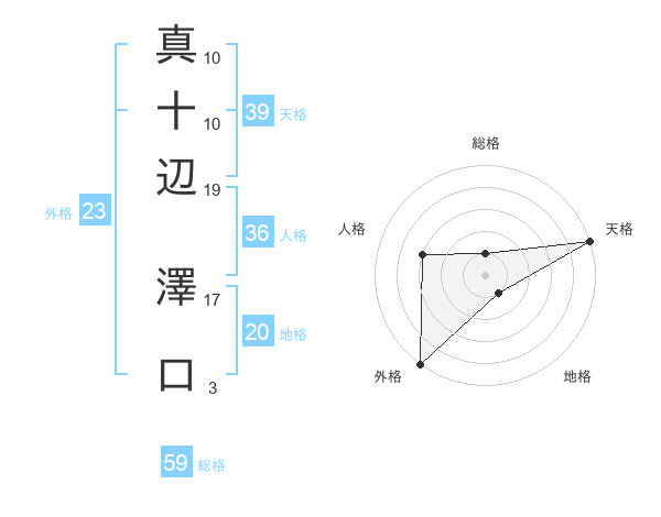 真十辺 澤口さんの天格は39画の5点!