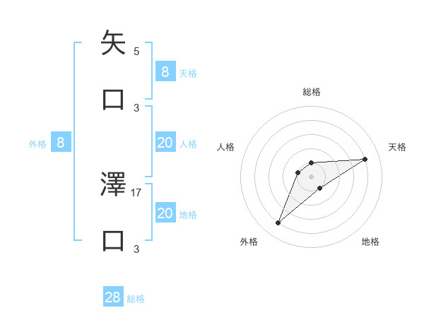 矢口 澤口さんの総格は28画の1点!