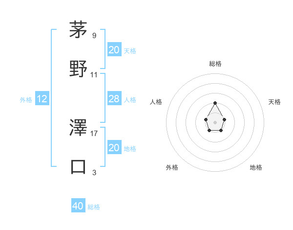 茅野 澤口さんを姓名の画数から五運を鑑定
