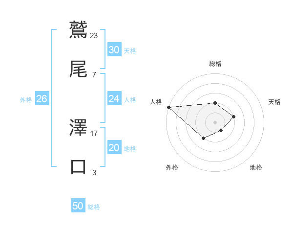 鷲尾 澤口さんを姓名の画数から五運を鑑定