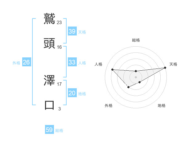 鷲頭 澤口さんの天格は39画の5点!