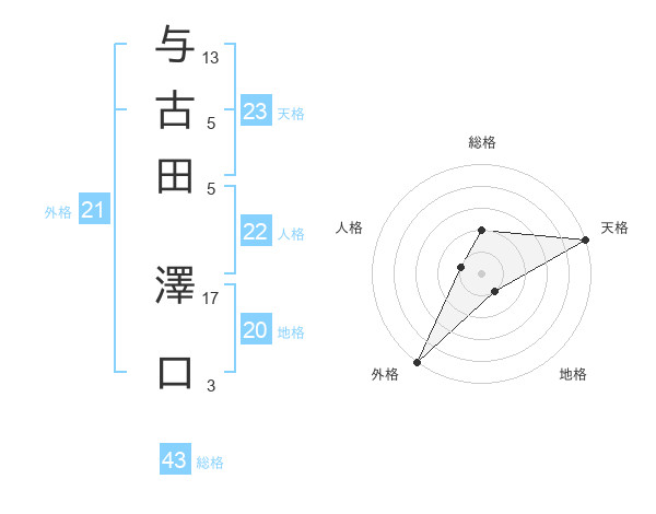 与古田 澤口さんを姓名の画数から五運を鑑定