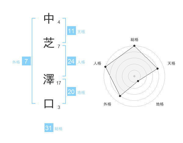 中芝 澤口さんを姓名の画数から五運を鑑定