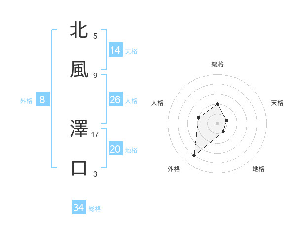 北風 澤口さんの総格は34画の2点!