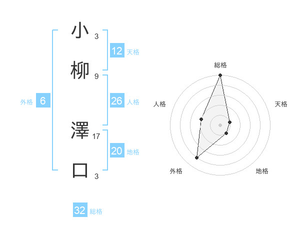 小柳 澤口さんを姓名の画数から五運を鑑定