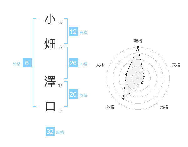 小畑 澤口さんの総格は32画の5点!