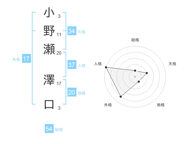 小野瀬 澤口さんの総格は54画の1点