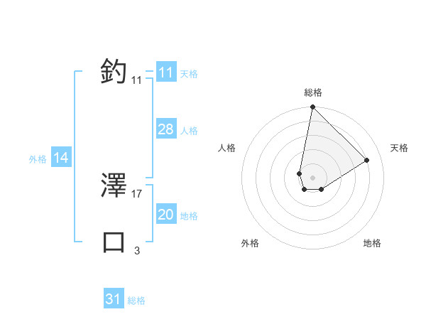 釣 澤口さんの総格は31画の5点!