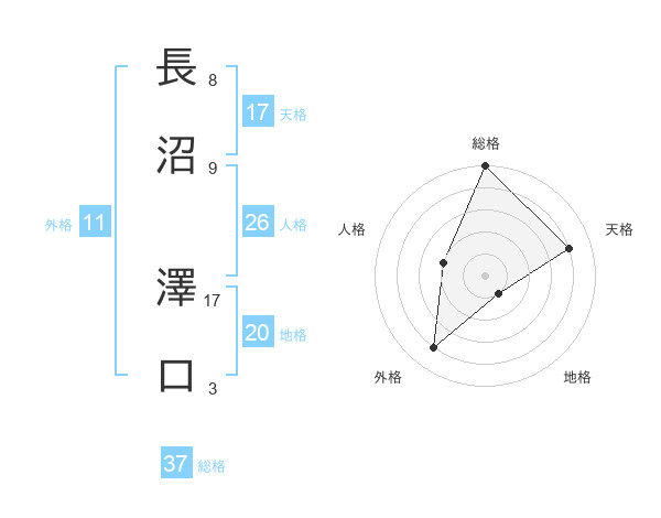 長沼 澤口さんの総格は37画の5点!