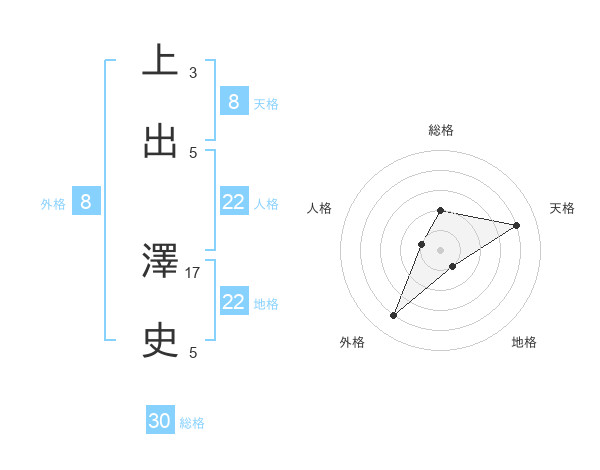 上出 澤史さんの総格は30画の2点!