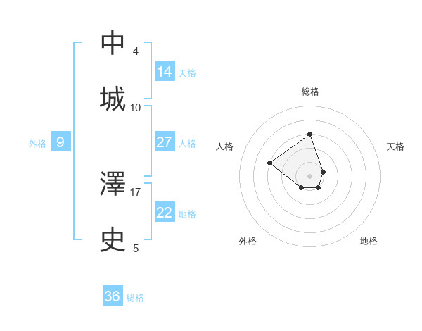 中城 澤史さんの総格は36画の3点!