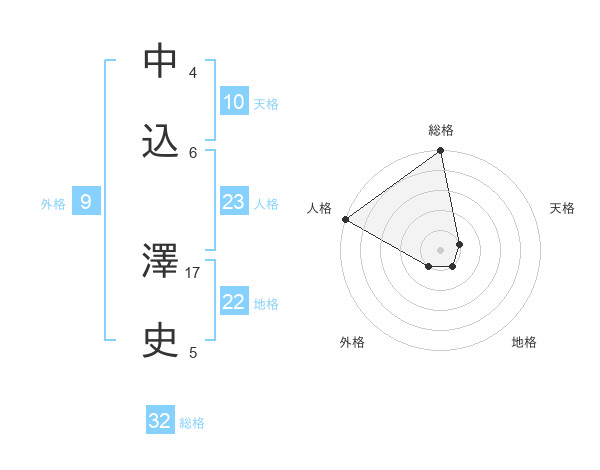 中込 澤史さんの総格は32画の5点!