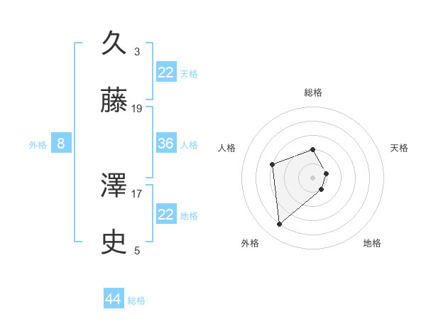 久藤 澤史さんを姓名の画数から五運を鑑定