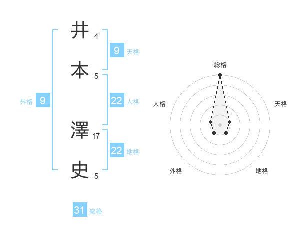 井本 澤史さんの総格は31画の5点!