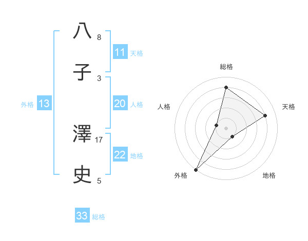 八子 澤史さんの総格は33画の4点!