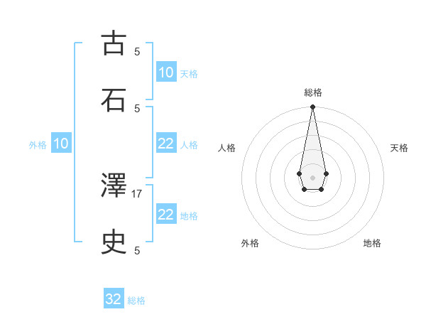 古石 澤史さんの総格は32画の5点!