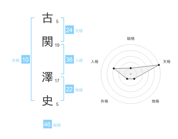 古関 澤史さんの総格は46画の1点!