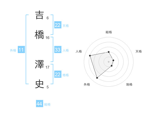 吉橋 澤史さんの地格は22画の1点!