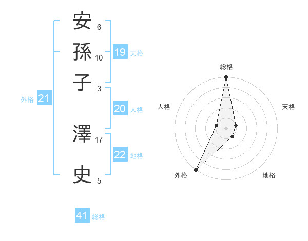 安孫子 澤史さんの外格は21画の5点!