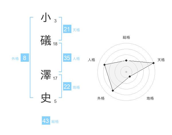 小礒 澤史さんの天格は21画の5点!