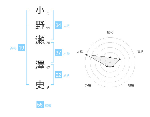 小野瀬 澤史さんを姓名の画数から五運を鑑定