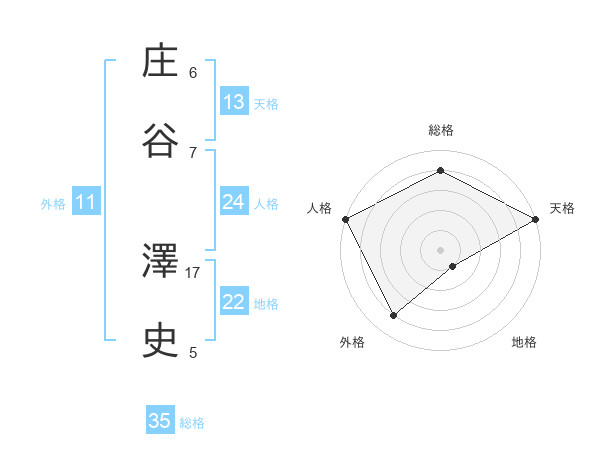 庄谷 澤史さんの天格は13画の5点!