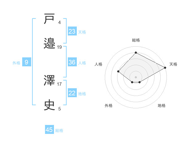 戸邉 澤史さんの天格は23画の5点!