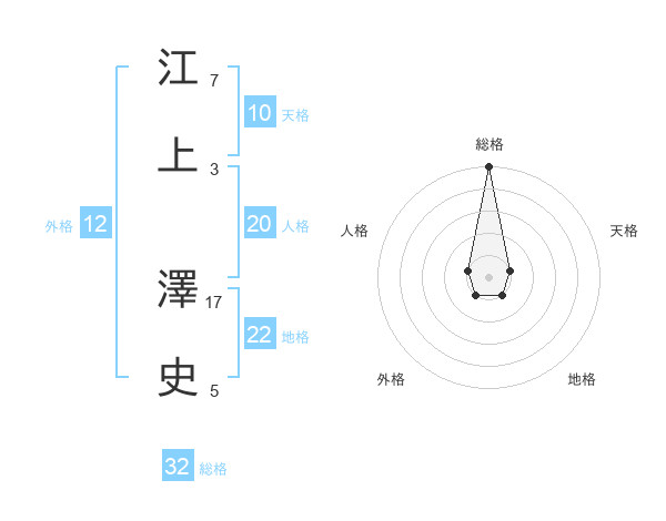 江上 澤史さんの総格は32画の5点!