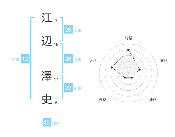 江辺 澤史さんの総格は48画の4点!