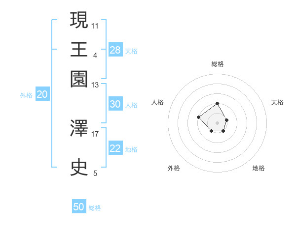 現王園 澤史さんを姓名の画数から五運を鑑定