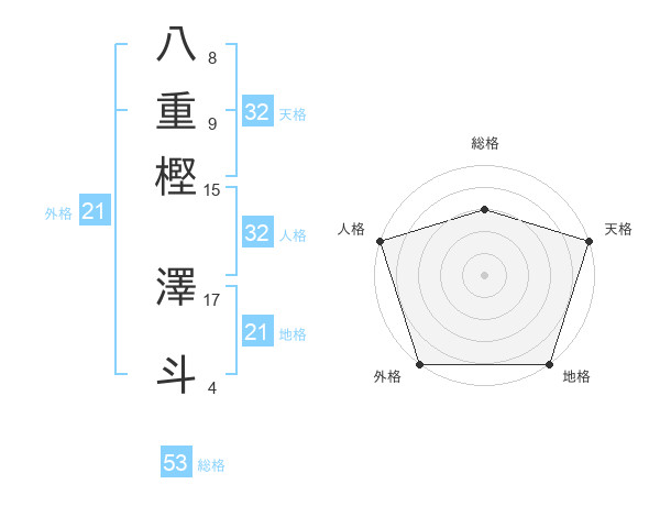 八重樫 澤斗さんの天格は32画の5点!