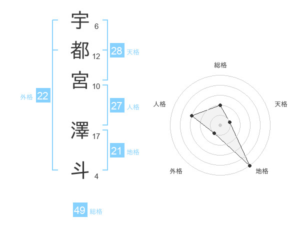 宇都宮 澤斗さんを姓名の画数から五運を鑑定