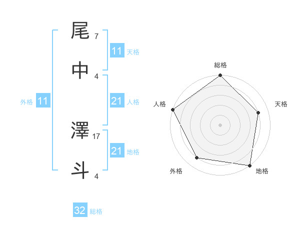 尾中 澤斗さんの天格は11画の4点!