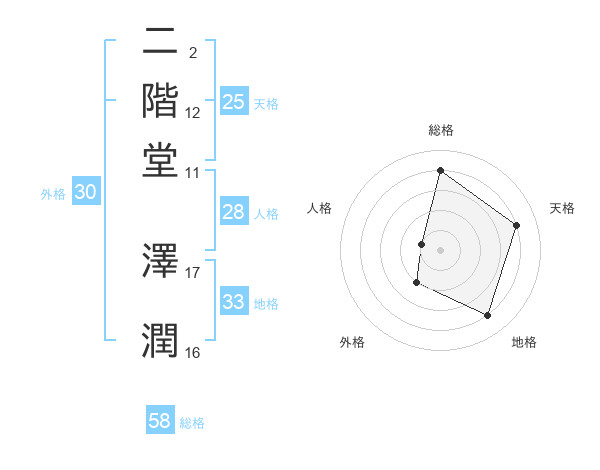 二階堂 澤潤さんを姓名の画数から五運を鑑定