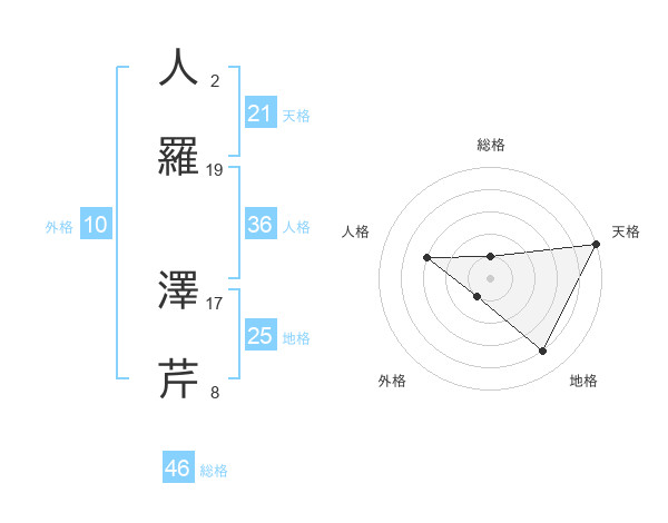 人羅 澤芹さんの総格は46画の1点!