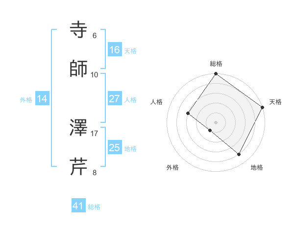 寺師 澤芹さんの総格は41画の5点!