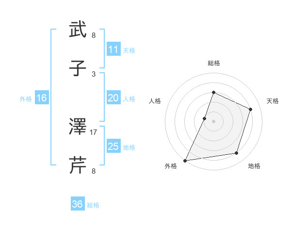 武子 澤芹さんの総格は36画の3点!