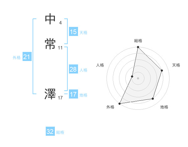 中常 澤さんの総格は32画の5点!