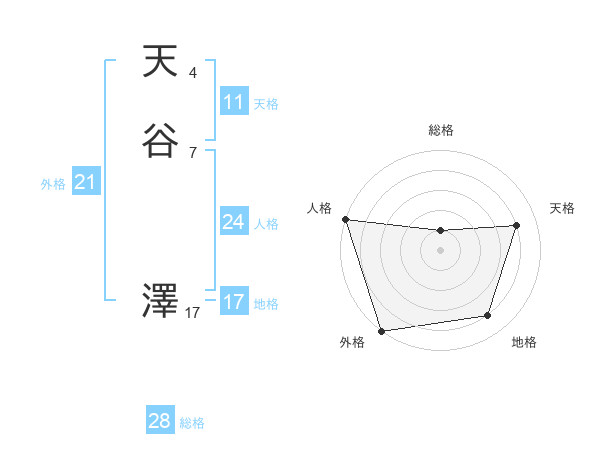 天谷 澤さんの総格は28画の1点!