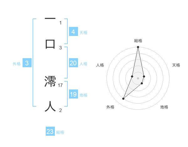 一口 澪人さんの総格は23画の5点!
