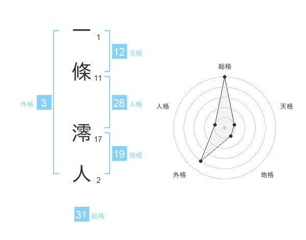 一條 澪人さんの総格は31画の5点!