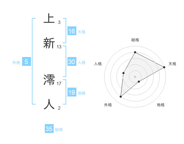 上新 澪人さんの総格は35画の4点!