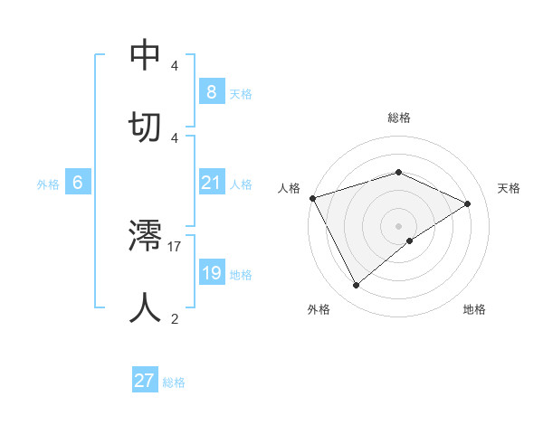 中切 澪人さんの天格は8画の4点!