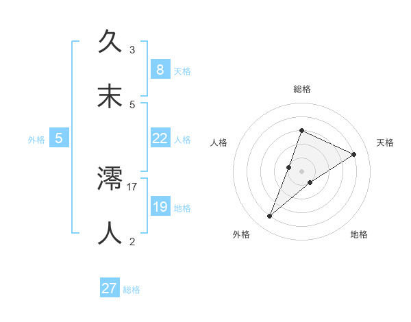 久末 澪人さんの総格は27画の3点!