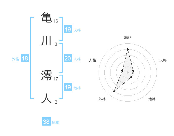 亀川 澪人さんの総格は38画の4点!