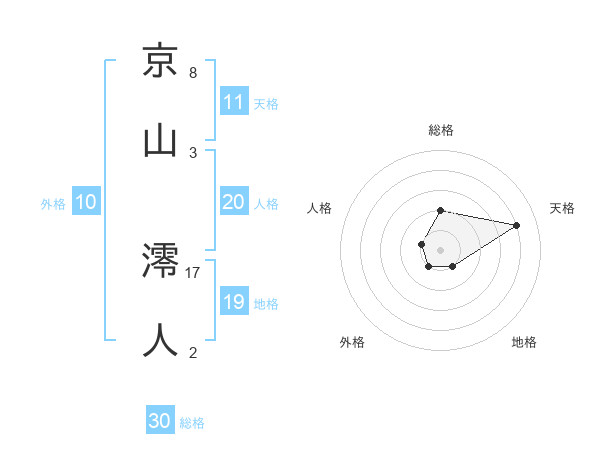 京山 澪人さんの総格は30画の2点!