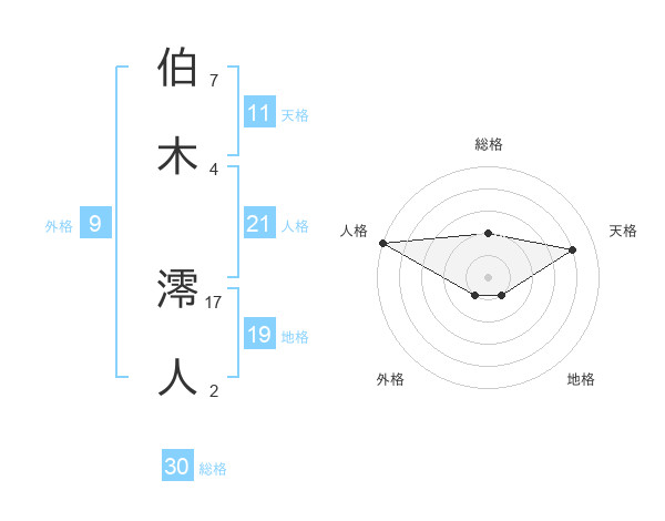 伯木 澪人さんの総格は30画の2点!
