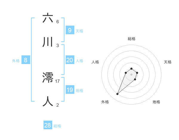 六川 澪人さんの総格は28画の1点!